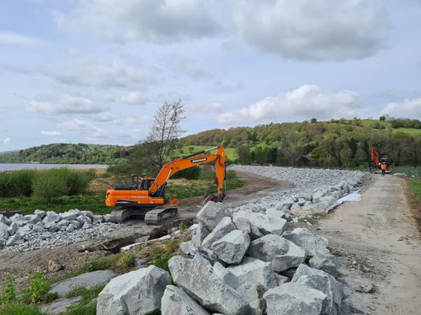 Work to strengthen the lake’s embankments and replace more than 1km of stone protection is taking place alongside facilitation works to accommodate possible future expansion of Bala Lake Railway.