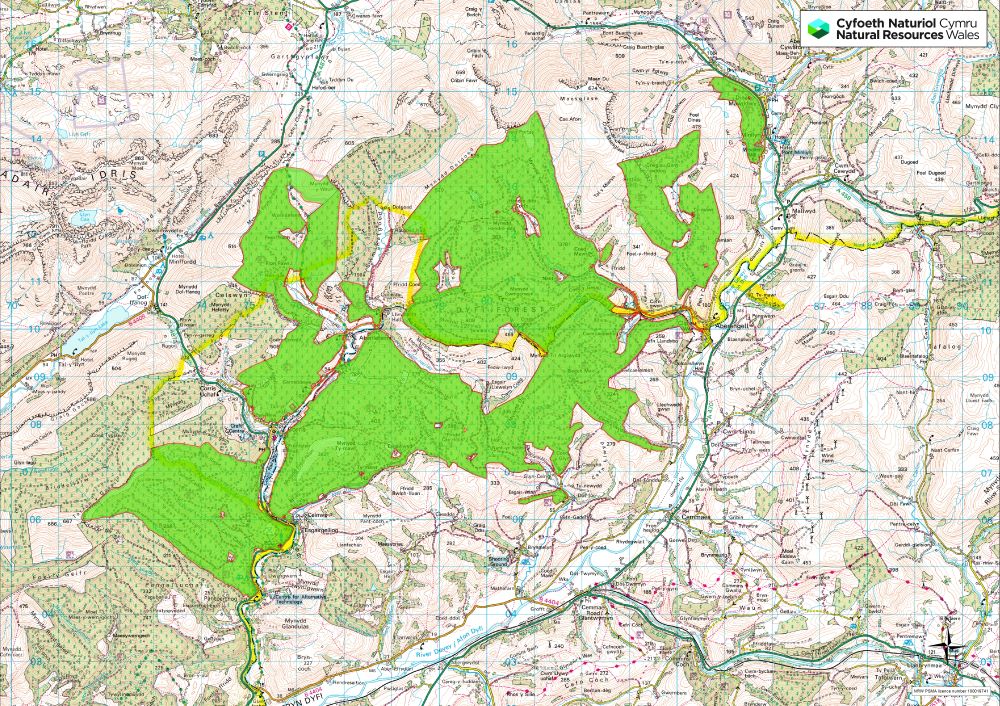 Dyfi forest is situated to the north and west of the Afon Dyfi. It includes the forest areas known as Pantperthog, Hengae, The Dulas Valley, Dyfi North, Dyfi South, Ty Mawr and Dinas Mawddwy. Total area 5016ha. It is situated within two planning authorities of Powys to the south and east, and Gwynedd including Snowdonia National Park to the north and west.